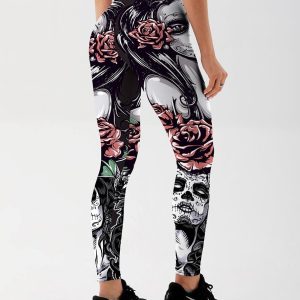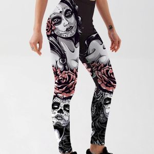 Ove Helanke u gotičkom stilu sa printom meksičke žene i ruža istaknut će vašu osobnost 2-smjerna elastična tkanina: sa ‘ pristaje kao druga koža Visoki struk: pruža izvrsnu potporu ...